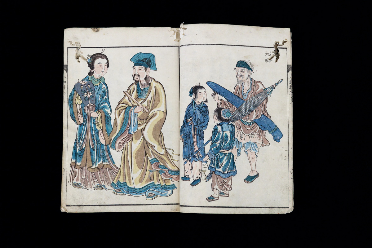 Разворот книги «Описание различных народов мира, написанное Нагатой Нанкэем, ики Иккосай»