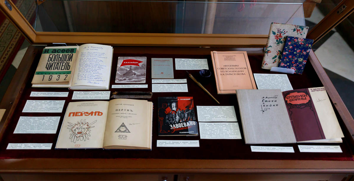 Музей книги приглашает на мини-выставку «Юбилей в юбилее: 115 лет со дня рождения коллекционера и библиофила А. К. Тарасенкова» из фондов научно-исследовательского отдела редких книг, где представлены экземпляры изданий произведений российских и советских поэтов из собрания литературоведа и поэта, редактора, литературного критика Анатолия Кузьмича Тарасенкова.