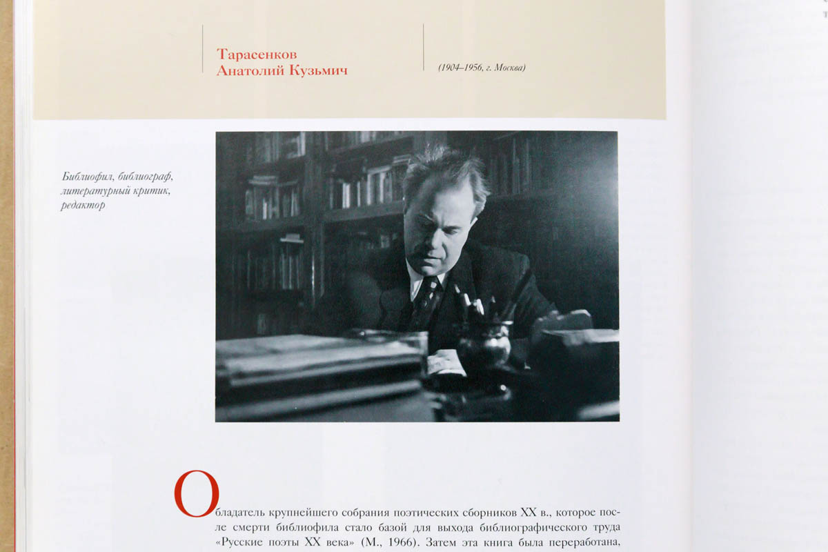 В этом году Анатолию Кузьмичу Тарасенкову (1909—1956) исполняется 115 лет со дня рождения. Он прожил всего 46 лет, прошёл Великую Отечественную войну, оставил после себя замечательное наследие — «крупнейшее [по словам, исследователя книжной культуры и библиофила Михаила Сеславинского] собрание поэтических сборников ХХ века». В результате покупки коллекция из 7800 книг поступила в Музей книги Государственной библиотеки СССР имени В. И. Ленина в 1973—1974-е годы. В 2024 году исполняется ещё один юбилей — 50 лет с этого события.