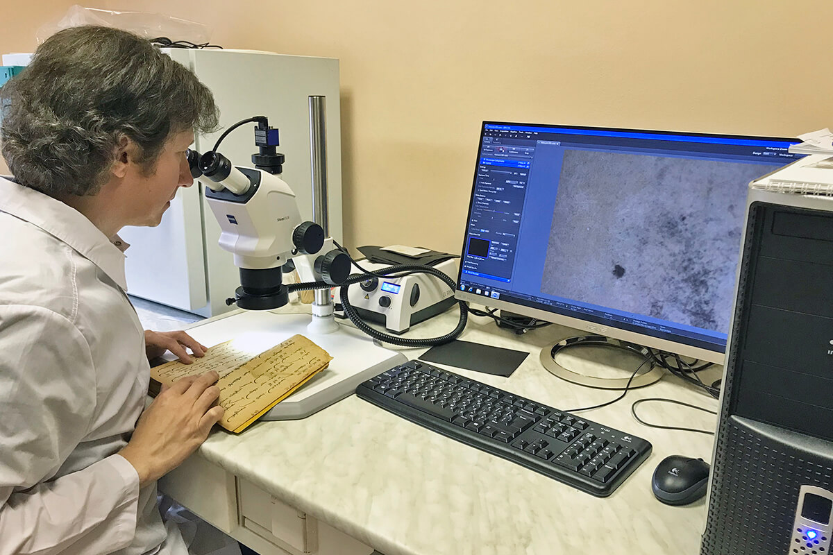 Согласно профилактическим мерам сохранности, в процессе обследования документа во многих случаях требуется применить микроскоп. При выборе микроскопа желательно его протестировать в лаборатории при работе с разными видами документов. В статье Алексея Анатольевича Кащеева представлены примеры микроскопного обследования документов на оборудовании, предоставленном компанией ZEISS Russia & CIS (ООО «Карл Цейсс»).