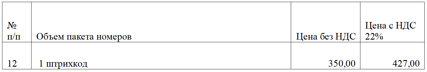 3. Цена на изготовление штриховых кодов: